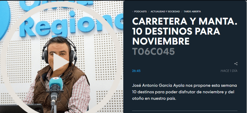 Esta entrada fue publicada en #CarreterayManTA y etiquetada Carretera y manta, España, Noviembre, Onda Regional de Murcia, otoño, Tarde Abierta, viajes. Guarda el enlace permanente.