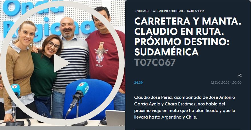 Esta entrada fue publicada en #CarreterayManTA y etiquetada Argentina, Carretera y manta, Chile, Claudio, Moto, Onda Regional de Murcia, Sudamérica, Tarde Abierta, viajar, Viaje al fin del mundo, viajes. Guarda el enlace permanente.