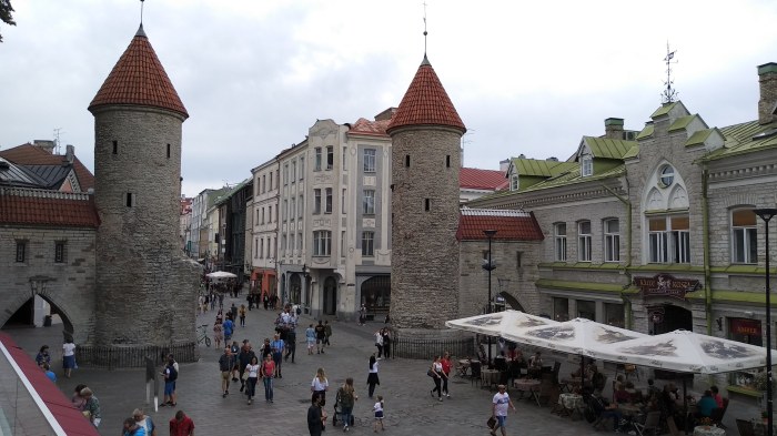 En la foto, la puerta de Viru, que da entrada a la ciudadela amurallada de Tallín; al entrar, da la impresión de trasladarnos a un cuento de la Edad Media; Cuando salimos hacia la ciudad nueva, parece que entramos en el plató de rodaje de una peli de 007. Precisamente esa ciudadela y ese contraste de escenarios son los grandes atractivos de la capital estonia.